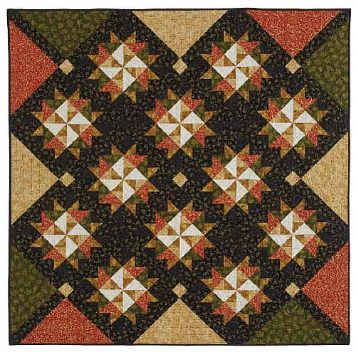 Star blocks are set on point for extra flair, and fabrics with metallic glints give it a touch of bling. Bolder colors will be wonderful, too, so feel free to make this up with whatever strikes your fancy.
