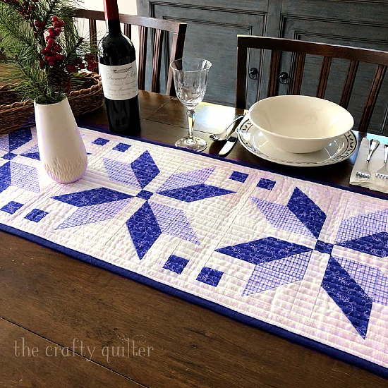 The Nordic Star blocks, and the completed runner, are so pretty in red and white. We can also imagine it in blue and white for a winter runner to enjoy well after the holidays.