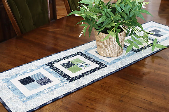 The completed runner, designed by Sherri McConnell, is 12 1/2″ x 44 1/2″.