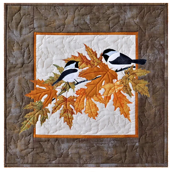 Sweet chickadees flutter among the branches in this beautiful little quilt. Colorful autumn maple leaves make it perfect for enjoying every fall.