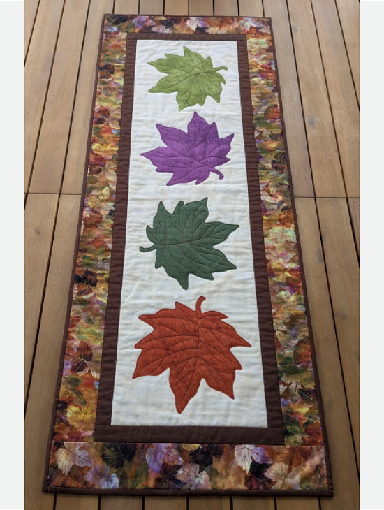 Simple piecing is used to construct the runner. The leaves are made with fusible appliqué, although you can use any appliqué method you prefer.