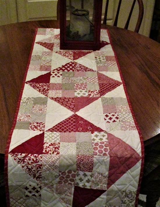 The runner will be charming in any color combination. Go with a monochromatic color theme, such as the red shown here, or mix things up. For example, it’s easy to imagine it in a scrappy multi-color palette.