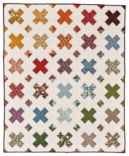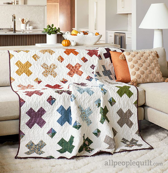 The completed throw quilt designed by Melissa Corey for American Patchwork & Quilting measures 60 1⁄2″ × 72 1⁄2″. Cutting instructions are also provided for: