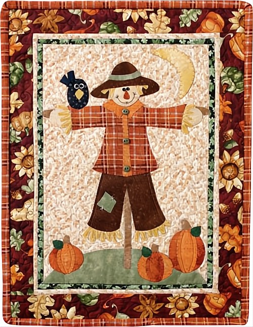 A handsome scarecrow and his cute crow friend take center stage in this charming quilt. It’s perfect for autumn and will make everyone who sees it smile.