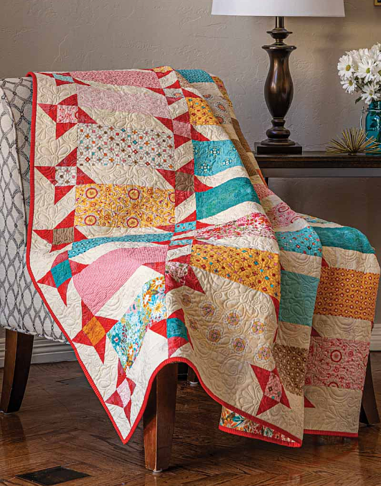 Rectangles, stitch-and-flip corners, and half-square triangles are used to create the quilt. Beginners will enjoy this project just as much as more experienced quilters.