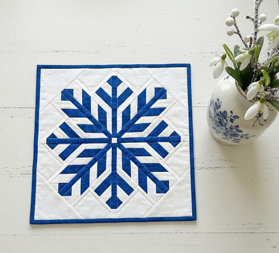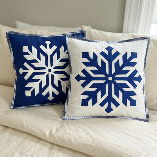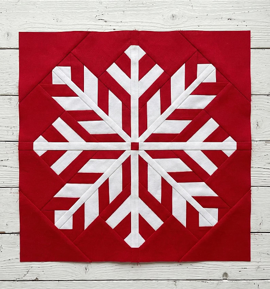 Add a little magic to a winter quilt project with this beautiful snowflake block. The crisp, geometric design will be striking in pillow covers, wall hangings, table runners, and larger quilts.