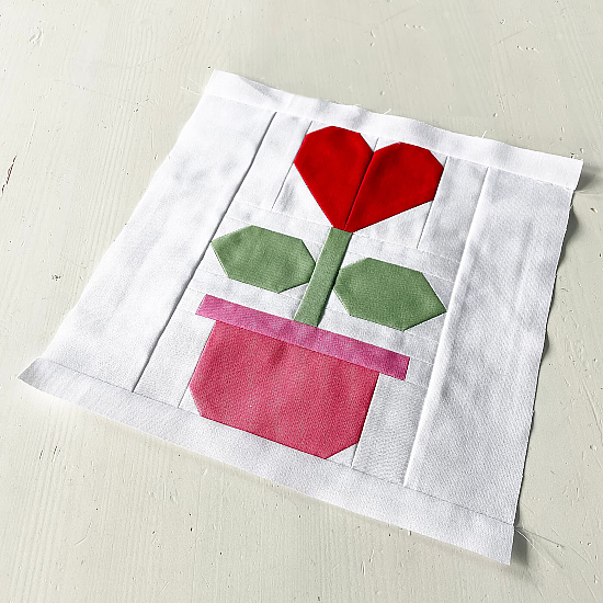 Create something special with this beautiful block. A blooming heart in a pretty pot makes a lovely gift and will last longer than flowers! It’s also a sweet addition to your Valentine’s Day decor.