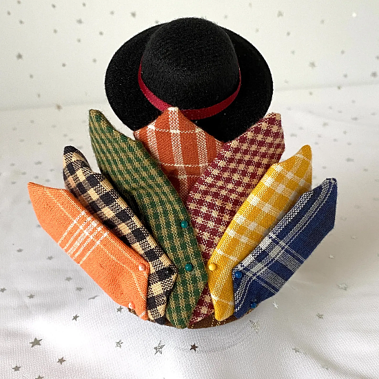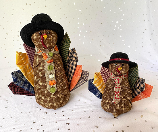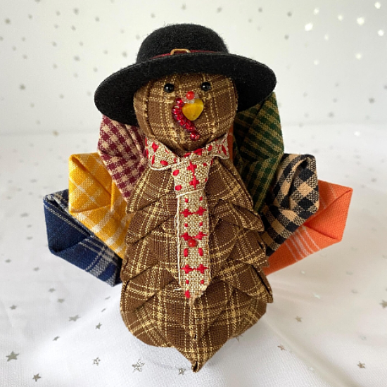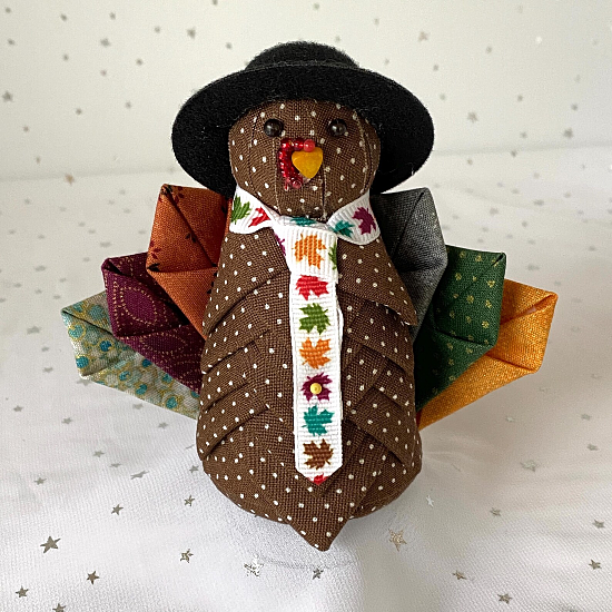 Turn scraps from autumn quilt projects into a charming 3D turkey. This delightful ornament is the perfect addition to a Thanksgiving centerpiece, tucked into a wreath, set on a shelf, or given as a hostess gift.
