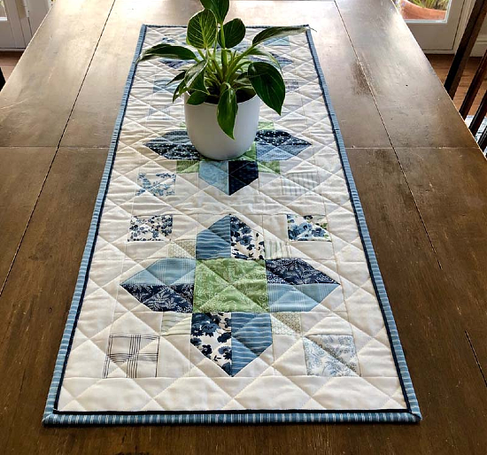 Three blocks will make a lovely runner, four can be a table topper or make more for a larger quilt. The blocks work nicely with or without sashing.