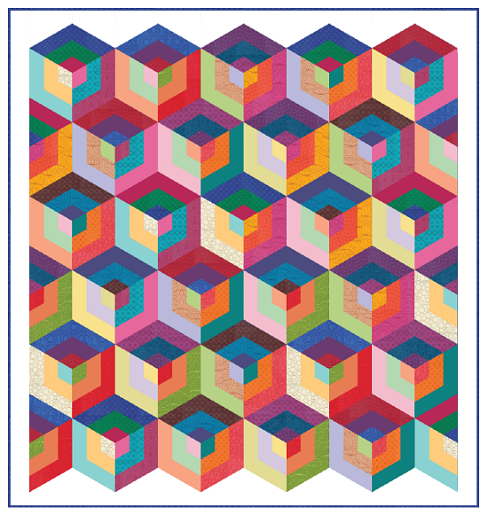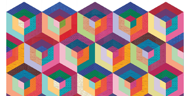 Create a stunning quilt that appears three-dimensional with a large combination of low-contrast prints. Notice that while the colors move the eye around the quilt, it’s the values that create the three-dimensional effect.