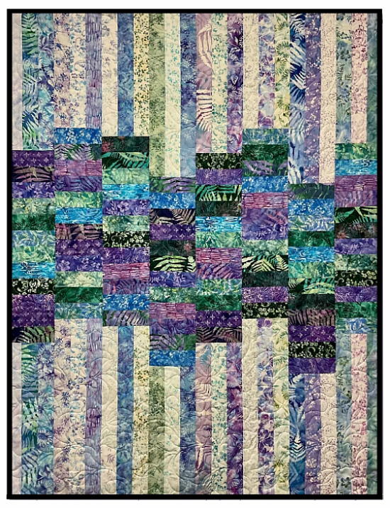 Turn a jelly roll of 2 1/2″ strips into this beautiful throw quilt. While the design is simple, it’s eye-catching in any color palette.
