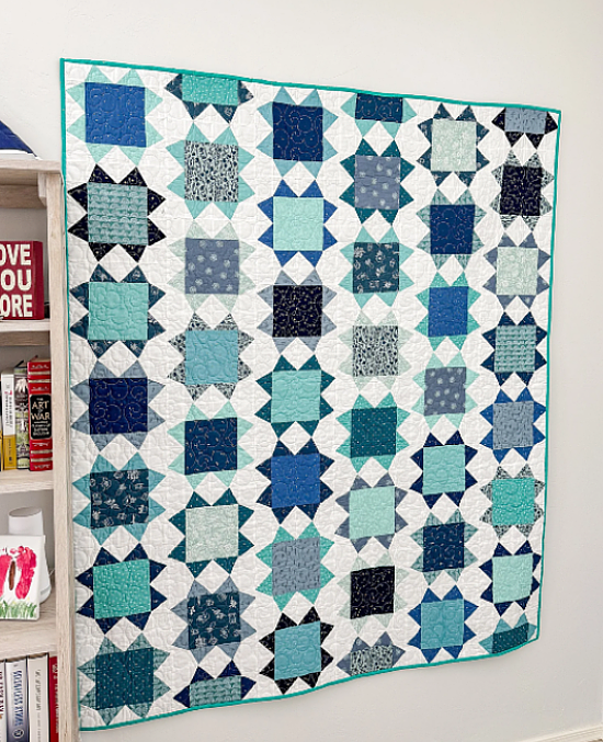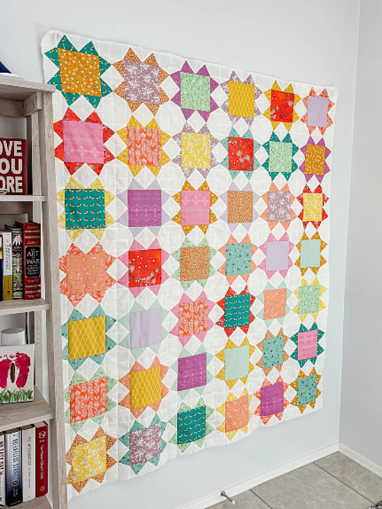 Cute star blocks shine in this beautiful quilt. It’s a fun project for showcasing colorful prints, or go with a more limited color palette.