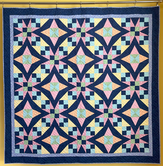 Two blocks combine to create the beautiful design. Quilters who can sew a consistent 1/4″ seam and cut accurately shouldn’t have any trouble making this quilt.
