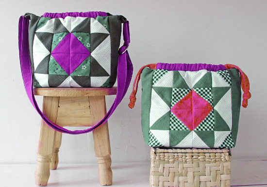Click here to purchase the “Patchwork Drawstring Bag” pattern.