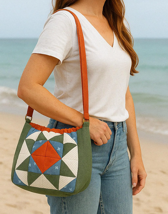 Designed by Cheri Demeter, the finished bag measures approximately 12″ x 10″ – a generous size for daily essentials without being bulky. It’s beginner-friendly while still offering enough detail to satisfy seasoned quilters.