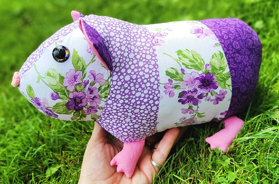 The Guinea Pig, designed by Pauline McArthur from Funky Friends Factory, is 12″ long x 7″ tall, making it perfect for cuddling.