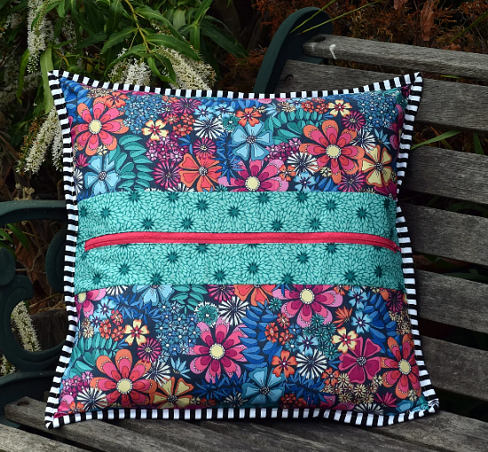We love the bright, colorful prints chosen by the designer. The pillow cover has an attractive zippered back (notice how the bright zipper has become an accent!).
