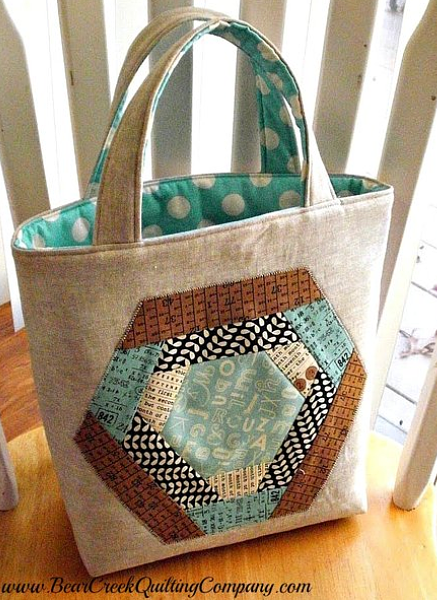 Scrappy hexagons are a delightful finishing touch for the sides of this handy tote bag. The hexies are appliqued in place, making this an easy bag to complete in your favorite colors.